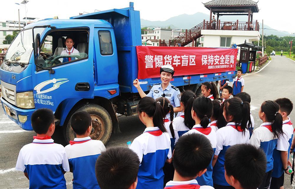 進(jìn)入暑期以來,江西省贛州市南康區(qū)公安局交管大隊(duì)組織民警通過寓教于樂的形式開展交通安全教育活動,提高學(xué)生“知危險、會避險”的交通安全防護(hù)意識。圖為7月30日,民警組織孩子們體驗(yàn)實(shí)景模擬貨車通行安全盲區(qū),宣講出行注意事項(xiàng)。