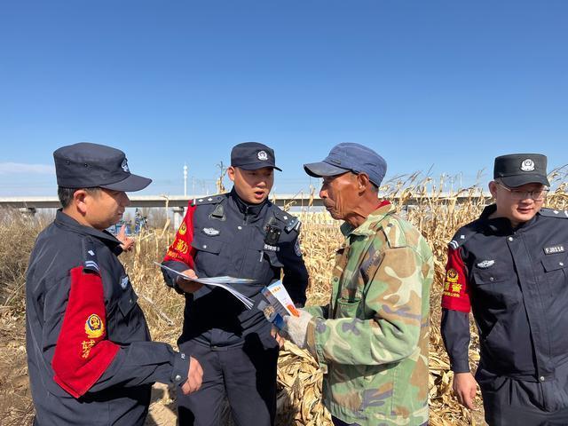 近日,北京鐵路公安處懷安站派出所組織民警深入京包客專高鐵沿線開展愛路護路宣傳和法治教育,提醒沿線居民不要焚燒莊稼秸稈,保管好廢棄地膜,以免影響高鐵列車運行安全。圖為民警向群眾發(fā)放法治宣傳資料。
