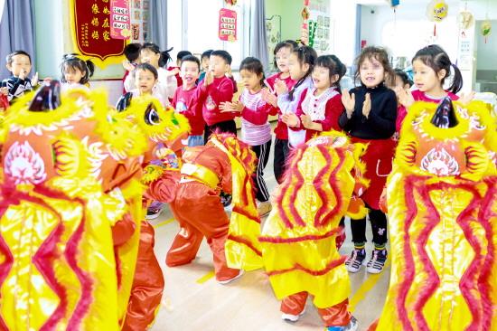 學前兒童學籍管理新規(guī)將在一定程度上約束家長,不讓孩子提前到其他機構(gòu)進行“填鴨式”學習,從容度過幼兒園豐富多彩的生活。圖為新疆烏魯木齊市一所幼兒園的孩子們在舞獅子,樂享冬日時光。 CFP供圖