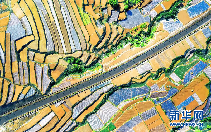 航拍“愛尚沂南 紅色之旅”環(huán)線,風(fēng)景如畫。 新華網(wǎng)發(fā)