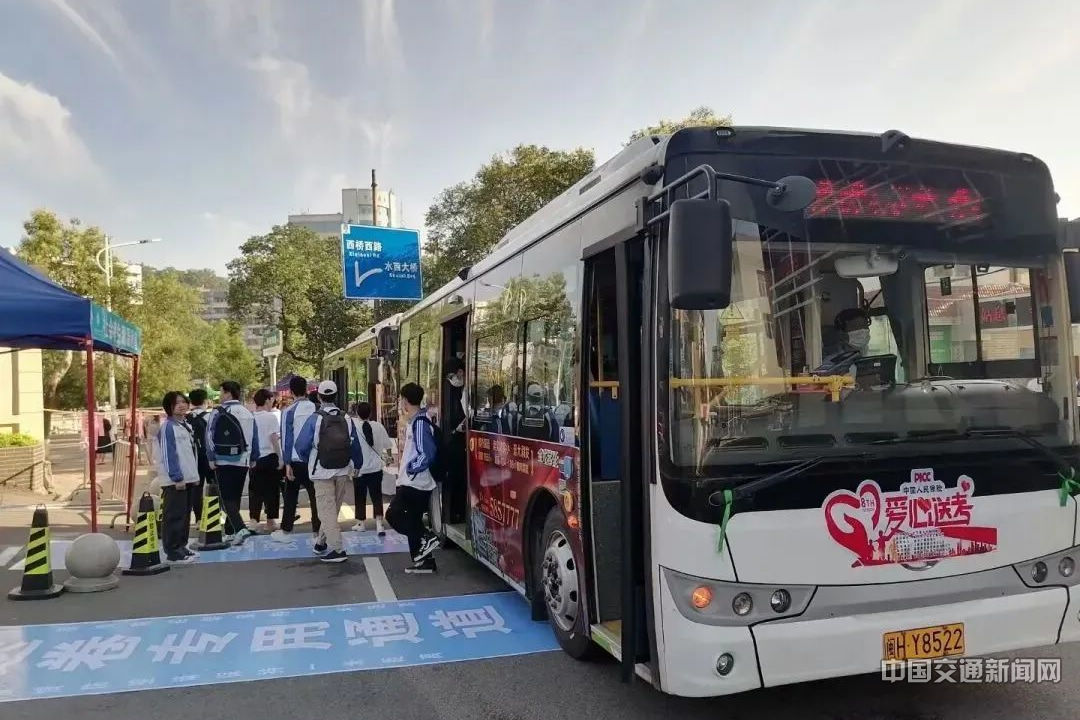 記者從福建省交通運輸廳獲悉,高考首日,全省共組織出租汽車4000余輛、公交車3200余輛、“點對點”包車241輛參加“愛心送考”,接送考生約40.6萬人次??忌鷳{準考證可免費乘坐各地公交車、福州地鐵1號線和2號線。福州多個考點大門外,一輛輛張貼“愛心送考”車標、系著綠色絲帶的出租汽車整齊停放,志愿者們隨時待命,及時為有需要的考生提供應(yīng)急保障服務(wù)。
