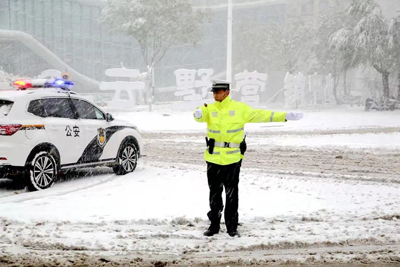 11月7日一早,德州市山東德城區(qū)積雪已超15毫米,路面濕滑,給廣大市民出行帶來很大的安全隱患。德州交警啟動應(yīng)急預(yù)案,在轄區(qū)重點路段、路口增派警力,疏堵保暢,同時加大巡邏管控力度,幫助“趴窩”車輛解困,快速處理路面刮擦事故,全力確保道路交通安全,被群眾稱為雪中的熒光“路標(biāo)”。