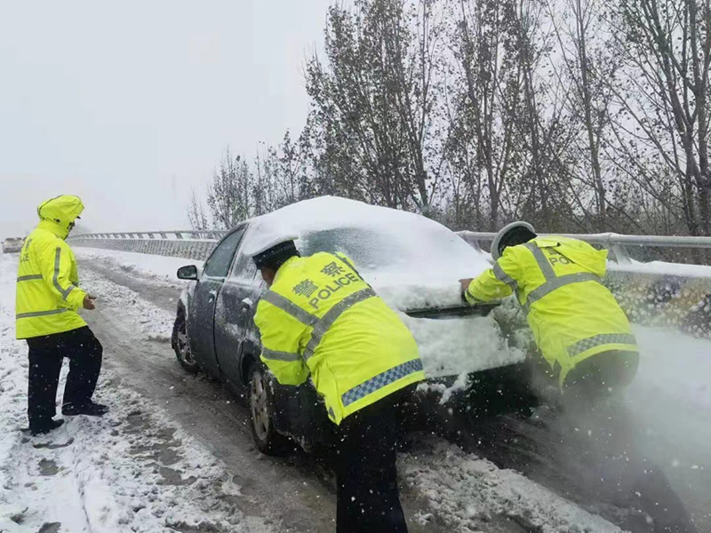面對暴雪來襲,山東省濟(jì)南市公安局長清區(qū)分局多警聯(lián)動,巡警、交警和各派出所共同加大轄區(qū)治安交通巡防力度,通過在易發(fā)交通事故等重點路段采取定點執(zhí)勤和巡邏管控相結(jié)合的措施,幫助群眾解決上路期間發(fā)生的問題。11月7日上午10時30分,長清區(qū)交警大隊在大學(xué)城丁香路、紫薇路等重點路段執(zhí)勤中發(fā)現(xiàn)有拋錨車輛停在路中間,民警迅速前往救助,幫助過路受阻車輛及群眾,將車輛推至安全區(qū)域,并疏導(dǎo)交通、維持通行秩序。崮山派出所民警在國道104線巡邏時接到群眾求助,幫助遇困群眾車輛。歸德中隊交警幫助遇困車輛上的老人,將老人攙扶到中隊休息并送上熱水。