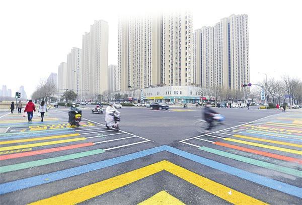近日,濟南首條“彩虹琴鍵斑馬線”正式完工,亮相槐蔭區(qū)臘山河東路與興福寺路交叉口。路口中間是“繽紛五色,匯流成章”的主題圖案,充分體現(xiàn)了泉城濟南“山、泉、湖、河、城”的元素。在斑馬線中間,有“我愛濟南”“有你在,我安心”“幸福路,慢慢走”等溫馨的話語,還增加了“安全帶,幸福帶”“把安全‘戴’(頭盔)回家”等交通安全的宣傳標語。交警部門希望通過示范路口的“吸睛效應(yīng)”,將這里打造成一個高效率的交通安全宣傳陣地,進一步增強廣大交通參與者的守法安全意識。(本報記者 崔健 攝)