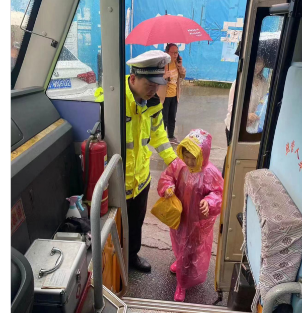 5月25日起,河南省鄭州市連續(xù)幾日陰雨天。為確保惡劣天氣下校車的出行安全,鄭州交警五支隊(duì)四大隊(duì)大隊(duì)長(zhǎng)程育龍?zhí)崆皽贤ㄝ爡^(qū)金水區(qū)吉貝爾幼兒園,詳細(xì)了解學(xué)校的具體位置、上學(xué)時(shí)間、班級(jí)數(shù)量、學(xué)生人數(shù)、校車情況等信息,挑選出公路(街道)沿線行駛路線長(zhǎng)的一部校車“跟車護(hù)送”,全力保障學(xué)生出行安全。