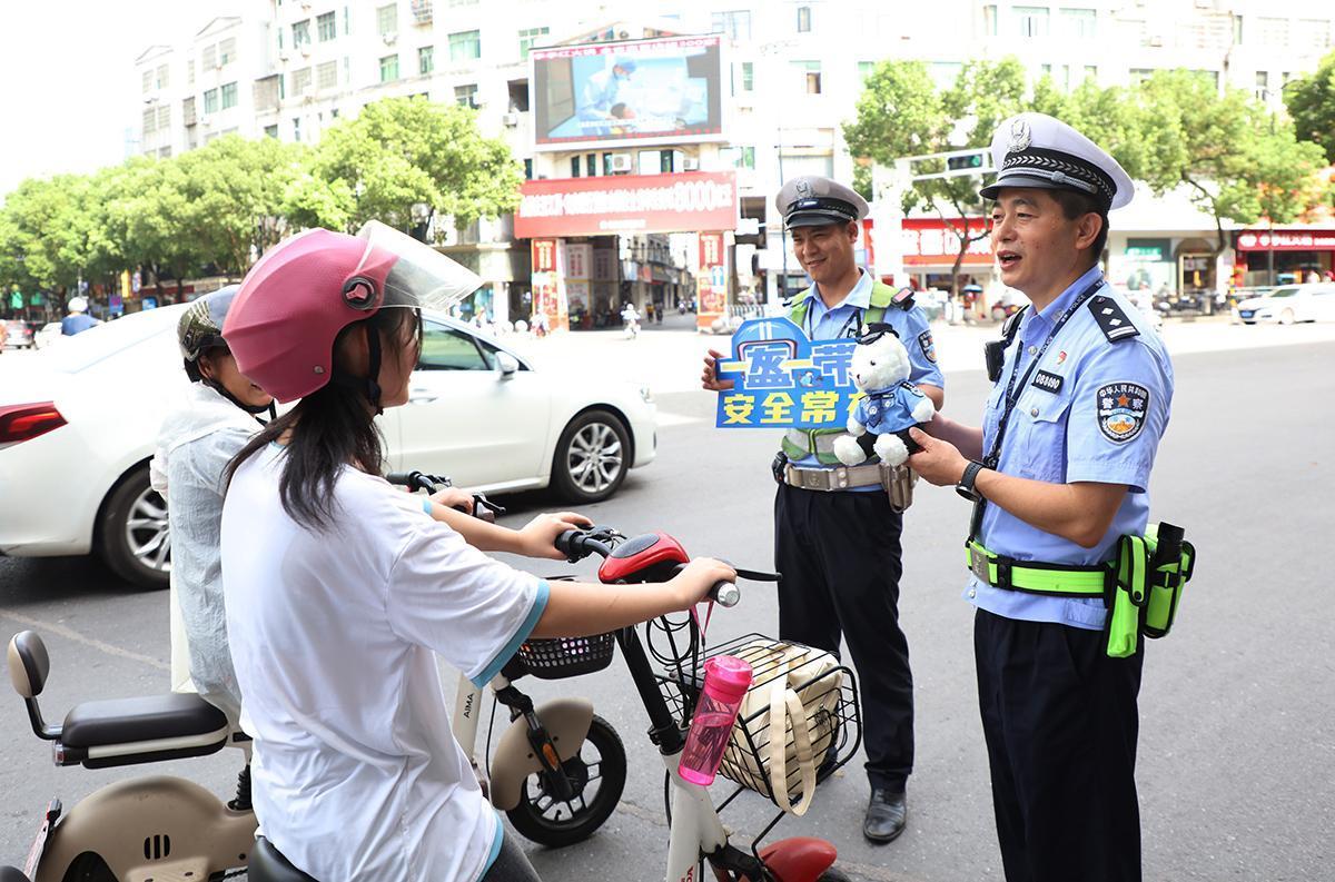 圖為7月10日,民警通過問答互動(dòng)方式宣傳“三零一戴”,并向群眾贈(zèng)送“交警小熊”。