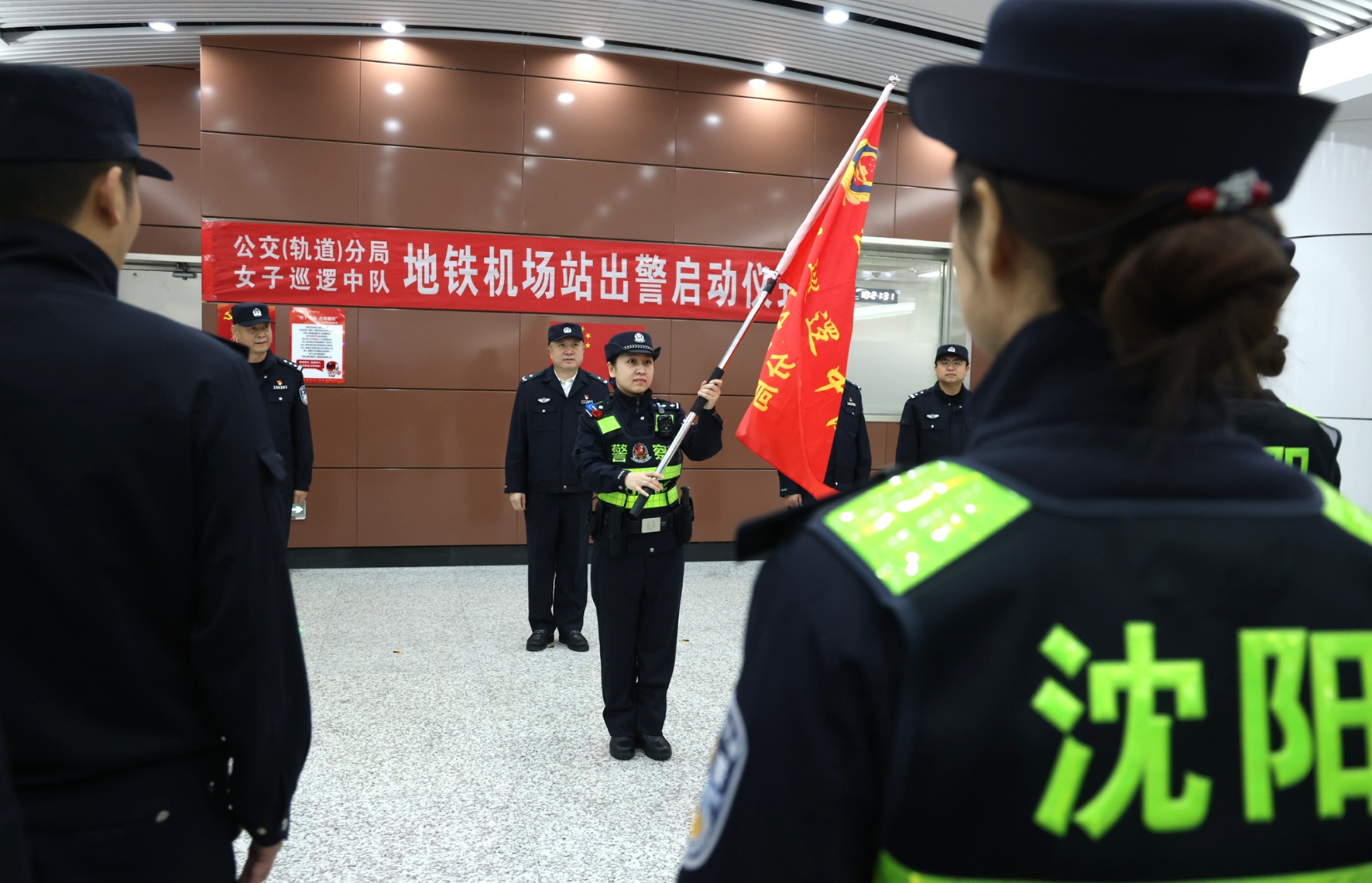 圖為11月21日,沈陽市公安局公交(軌道)分局在地鐵桃仙機場站臺舉行女子巡邏中隊出警啟動儀式。
