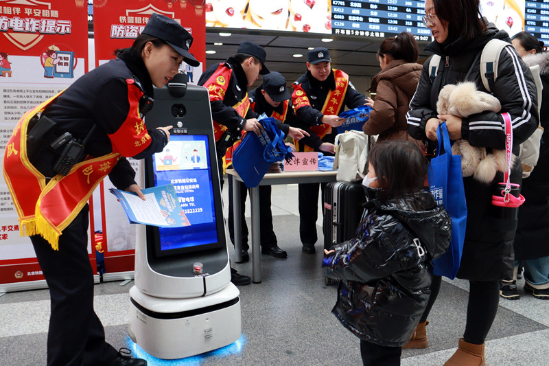 1月26日上午,北京鐵路公安局北京公安處在北京7大火車站和北京周邊6個高鐵站組織開展了“鐵警相伴,平安相隨”主題宣傳活動。上海鐵路公安局徐州鐵路公安處連云港站派出所的民警化身“大圣”,“變著戲法”教授旅客防盜常識。深圳、開遠、牡丹江等鐵路公安處通過“三句半”、有獎知識問答等豐富多彩的活動,邀請旅客參與,增強宣傳效果。