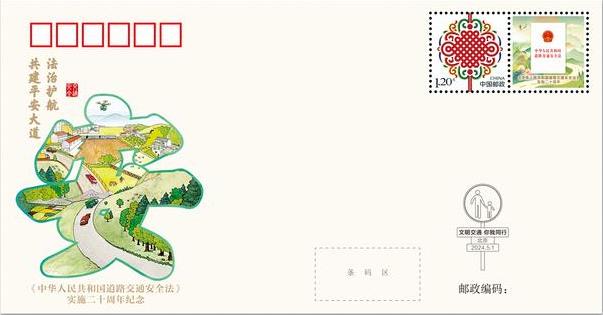 《中華人民共和國(guó)道路交通安全法》于2003年10月28日由第十屆全國(guó)人民代表大會(huì)常務(wù)委員會(huì)第五次會(huì)議通過,2004年5月1日起實(shí)施。20年來,我國(guó)相繼頒布實(shí)施《道路交通安全法實(shí)施條例》等一系列行政法規(guī),目前已經(jīng)形成了完善的道路交通安全法律體系,在維護(hù)道路交通秩序、預(yù)防和減少交通事故、保護(hù)人民群眾生命財(cái)產(chǎn)安全方面發(fā)揮了重要作用。警郵雙方為紀(jì)念《中華人民共和國(guó)道路交通安全法》實(shí)施20周年,特別發(fā)布了紀(jì)念郵品,并通過郵票這一經(jīng)典文化載體,傳播“自律、包容、禮讓、文明”的交通安全文化,推動(dòng)社會(huì)各界、人民群眾更加了解《中華人民共和國(guó)道路交通安全法》,推動(dòng)形成關(guān)心支持法治文明交通建設(shè)的良好氛圍。