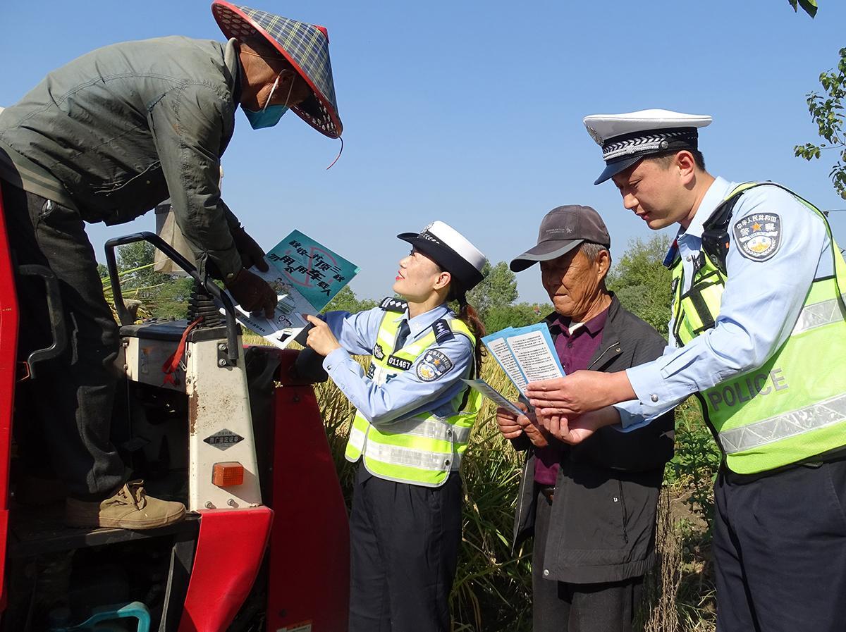10月9日,安徽省蕪湖市公安局交警支隊鏡湖大隊抓住農(nóng)村秋收季節(jié)特點,組織民警走進轄區(qū)田間地頭開展交通法規(guī)宣傳,提高群眾的交通安全意識。