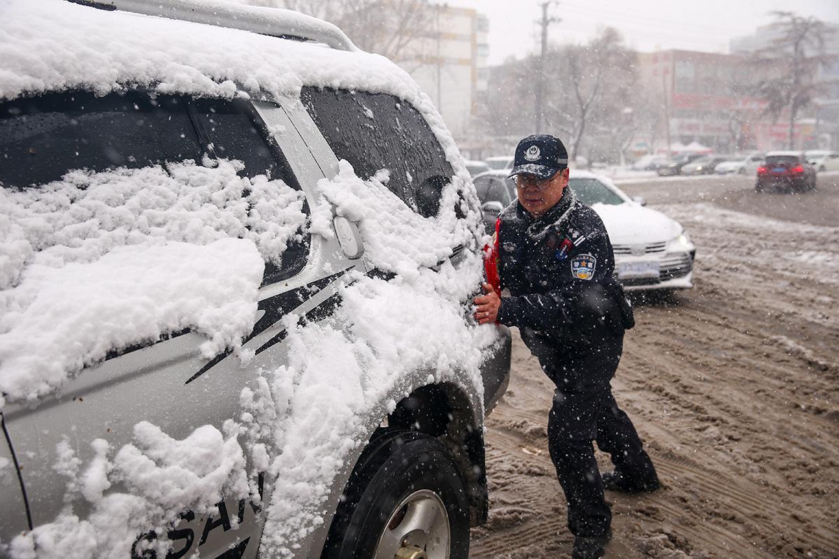 3月2日,受寒潮影響,山東省濟南市出現(xiàn)大風(fēng)降溫雨雪天氣。濟南市公安局市中區(qū)分局立即啟動惡劣天氣應(yīng)急預(yù)案,組織警力在重點路段、十字路口執(zhí)勤巡邏,為市民提供服務(wù),確保群眾出行安全。
