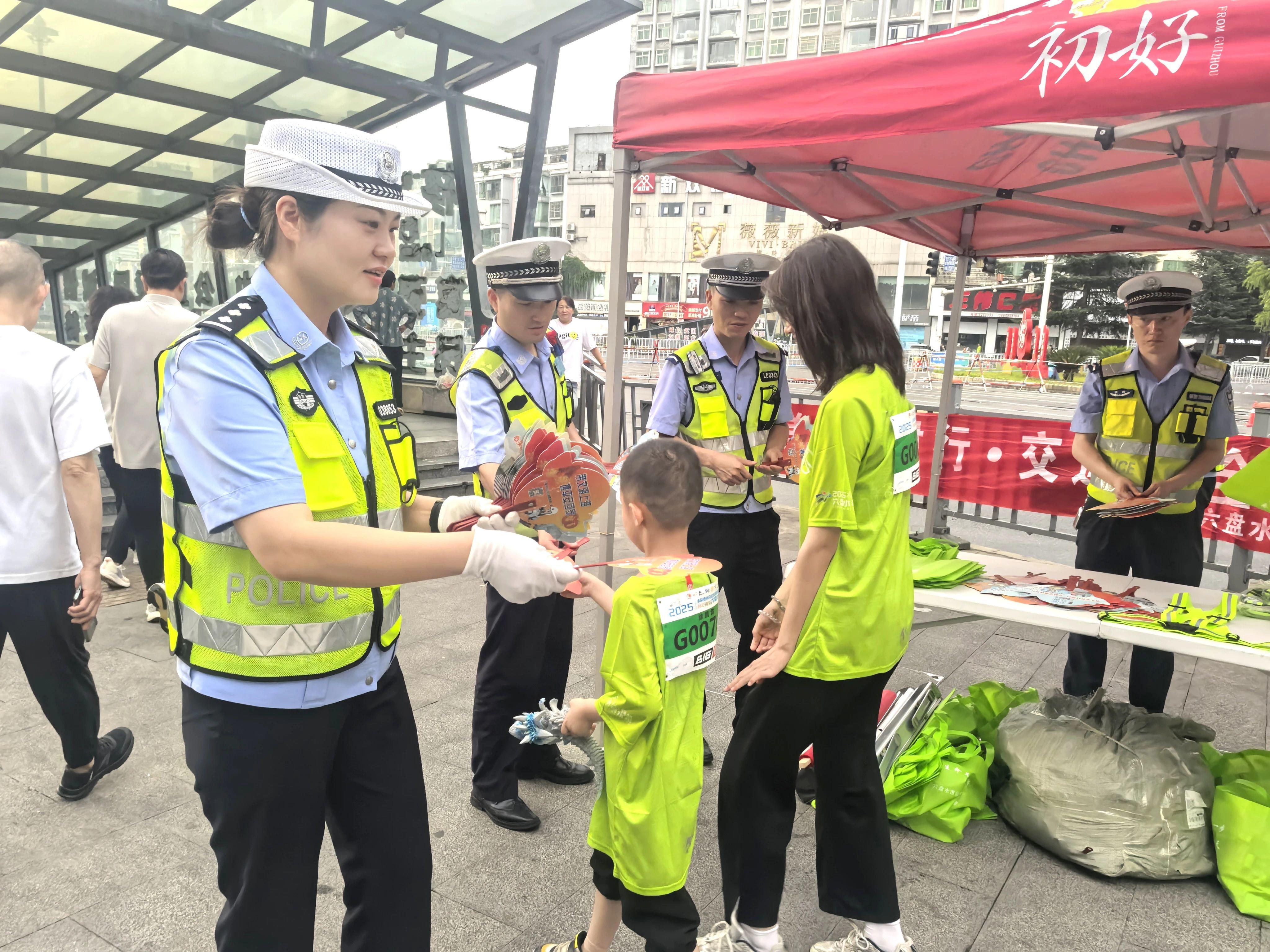 “被看見(jiàn)才安全”——暖心發(fā)放反光安全帶針對(duì)參賽者的特點(diǎn),六盤(pán)水交警創(chuàng)新服務(wù)舉措,在活動(dòng)現(xiàn)場(chǎng)設(shè)置宣傳服務(wù)臺(tái)向游客、群眾免費(fèi)發(fā)放反光安全帶、小扇子,并現(xiàn)場(chǎng)講解夜間出行安全知識(shí),提醒大家“被看見(jiàn)才安全”,有效提升夜間出行安全系數(shù)。
