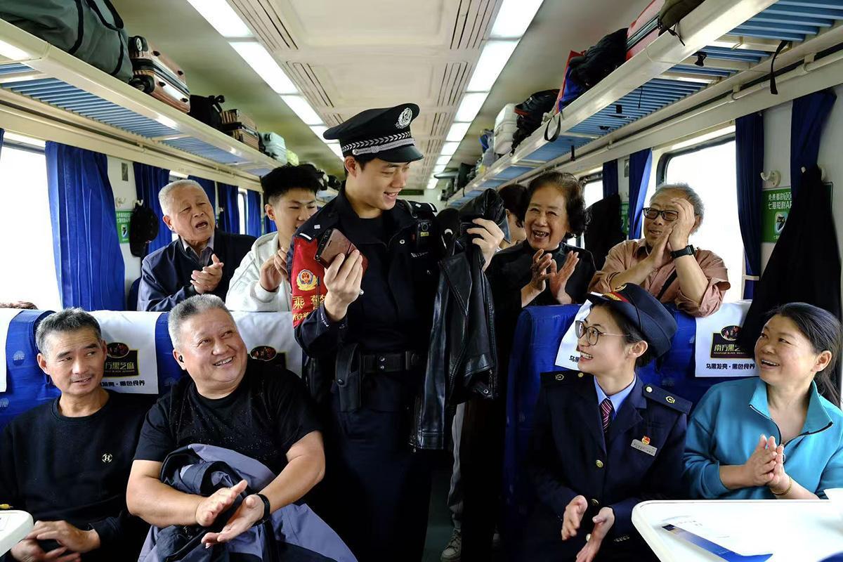 10月28日,上海鐵路公安局杭州公安處乘警支隊聯(lián)合杭州客運(yùn)段杭蘭車隊在T112列車上向老年旅客講解乘車安全知識。