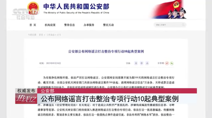 公安部 公布網(wǎng)絡(luò)謠言打擊整治專項行動10起典型案例