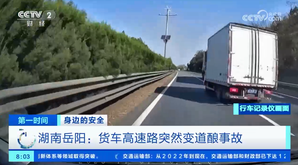 湖南岳陽:貨車高速路突然變道釀事故