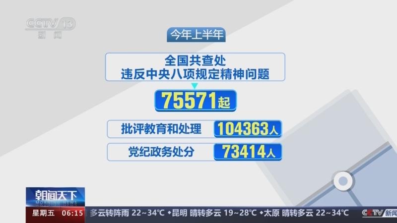 中央紀(jì)委國家監(jiān)委 6月查處違反八項規(guī)定精神問題23110起