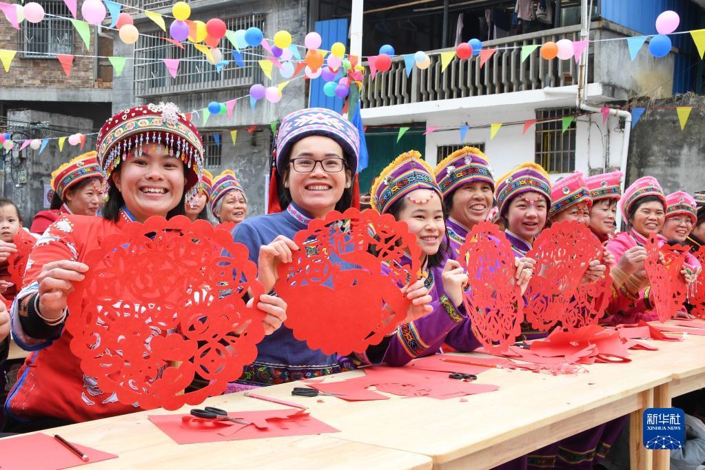 1月16日,在廣西河池市羅城仫佬族自治縣四把鎮(zhèn)思平村小稔屯,一名民間剪紙藝人在進(jìn)行生肖兔剪紙創(chuàng)作。