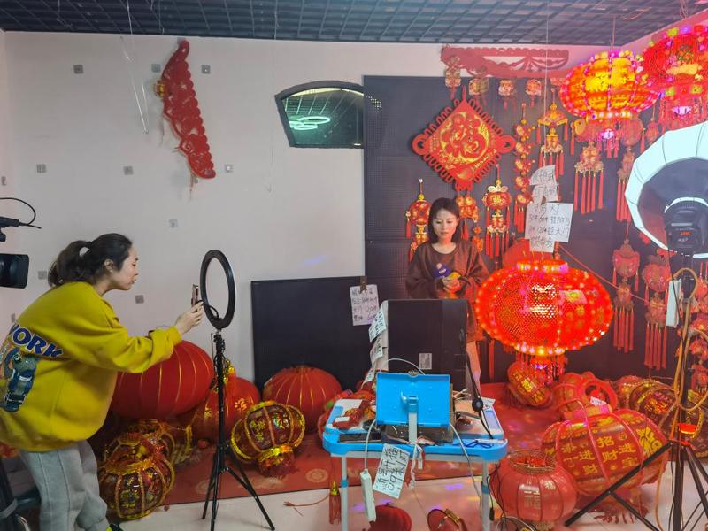 “如果買回去春節(jié)用的,可以看看3號鏈接,這款燈籠比較喜慶,適合家用……”在村內(nèi)一棟3層辦公樓中,7個直播間正在直播帶貨。負(fù)責(zé)人蘇云廣介紹,最近每天的營業(yè)額都超過了30萬元。