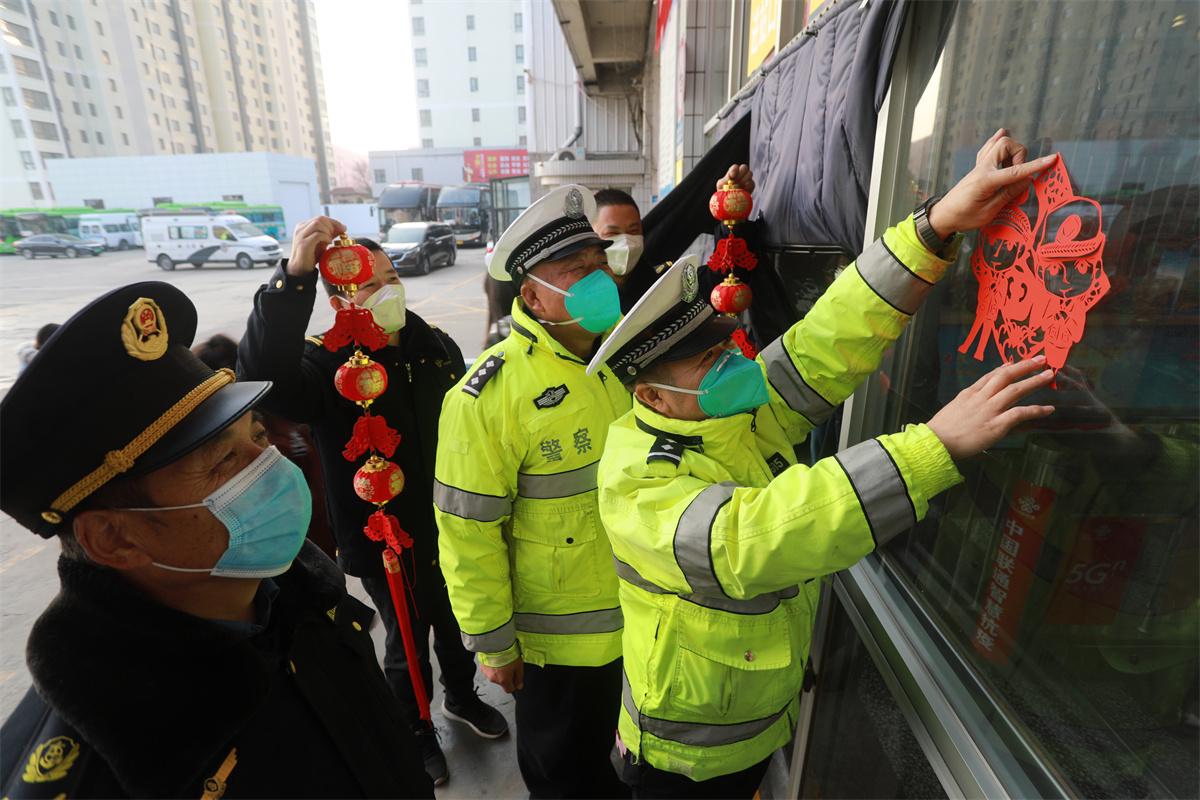 日前,陜西省渭南市澄城縣交警大隊(duì)聯(lián)合交通運(yùn)輸部門走進(jìn)轄區(qū)客運(yùn)公司,開展春運(yùn)道路交通安全檢查與宣傳活動(dòng)。對(duì)駕駛員的駕駛資質(zhì)、隨車安全設(shè)施設(shè)備進(jìn)行了檢查,在承運(yùn)的車輛上全部粘貼“安全帶、禁止撥打手機(jī)”等交通安全提示貼。與往年不同的是,今年民警給運(yùn)輸企業(yè)候車大廳張貼了“ 溫暖回家路”的主題宣傳剪紙,通過(guò)群眾喜聞樂(lè)見的形式宣傳平安回家注意事項(xiàng)。