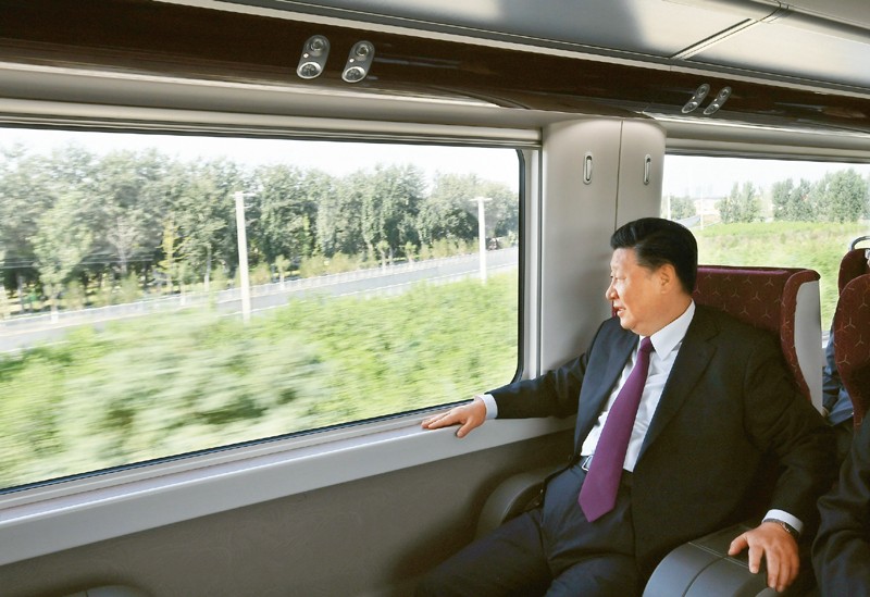 2019年9月25日上午,北京大興國(guó)際機(jī)場(chǎng)投運(yùn)儀式在北京舉行。中共中央總書(shū)記、國(guó)家主席、中央軍委主席習(xí)近平出席儀式,宣布機(jī)場(chǎng)正式投運(yùn)并巡覽航站樓。這是習(xí)近平乘坐軌道列車(chē)前往北京大興國(guó)際機(jī)場(chǎng)。 新華社記者 謝環(huán)馳/攝