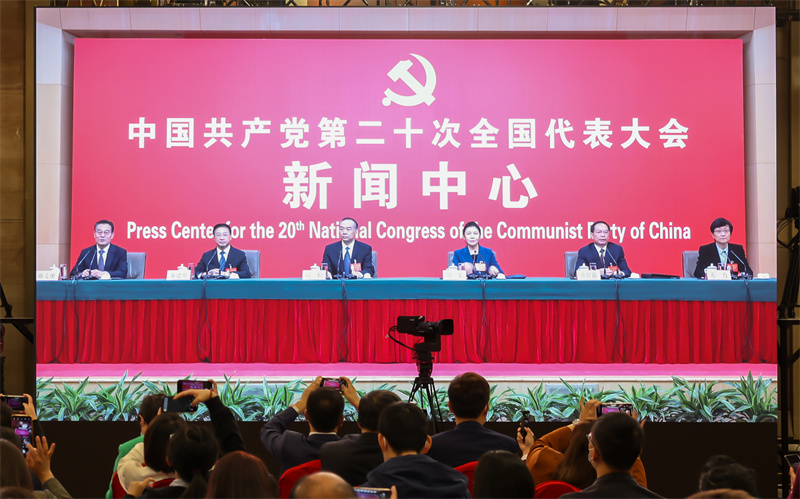 10月19日,黨的二十大新聞中心舉行記者招待會。圖為本報記者提問。 本報記者 王建軍 攝