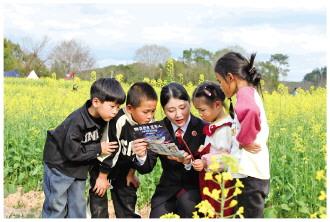 圖為龍巖市長(zhǎng)汀縣檢察干警來(lái)到田間地頭為留守兒童普及法律知識(shí)。 劉學(xué)煒 攝