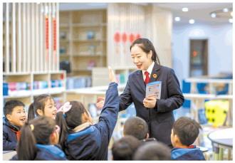 圖為江蘇省泰州市姜堰區(qū)人民檢察院未成年人法治宣講團的工作人員近日走進校園,給學(xué)生上法治教育課。 周社根 攝