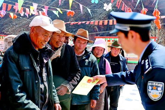 圖為西藏國安干警向藏區(qū)群眾宣傳國家安全法律法規(guī)。 (國安宣工作室供圖)