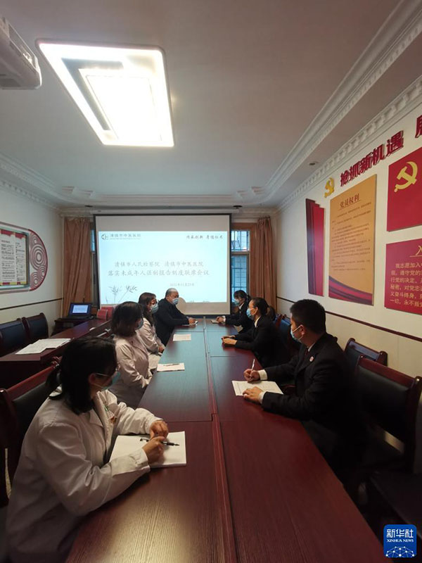 12月16日,貴州省清鎮(zhèn)市檢察機(jī)關(guān)與醫(yī)療機(jī)構(gòu)召開(kāi)聯(lián)席會(huì)議,研究推進(jìn)醫(yī)療機(jī)構(gòu)落實(shí)侵害未成年人案件強(qiáng)制報(bào)告制度。新華社發(fā)(杜遠(yuǎn)敏 攝)