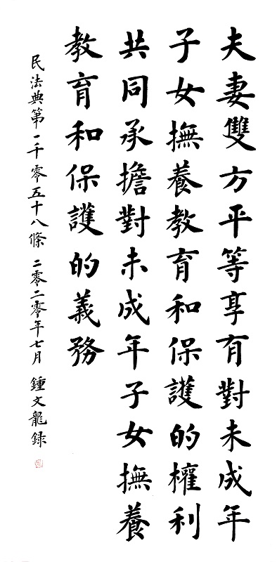 鐘文龍,山東省青島市南區(qū)書法家協(xié)會副主席,師從盧中南先生,專注唐楷研習(xí),致力于楷書教育與創(chuàng)作。