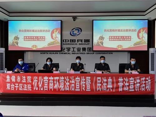 為深入學(xué)習(xí)貫徹習(xí)近平總書記系列重要講話精神特別是關(guān)于優(yōu)化營商環(huán)境建設(shè)的重要講話和批示,全面落實(shí)遼寧省高院工作要求和盤錦市委、市政府的具體部署,抓好《遼寧省優(yōu)化營商環(huán)境條例》、《民法典》貫徹落實(shí) ,積極推進(jìn)我市法治化營商環(huán)境建設(shè)。8月20日下午,盤錦市中級(jí)人民法院、雙臺(tái)子區(qū)人民法院共同組織普法宣講員到北方華錦化學(xué)工業(yè)集團(tuán)有限公司,開展“優(yōu)化營商環(huán)境”法治宣講暨《民法典》普法宣傳活動(dòng)。
