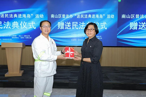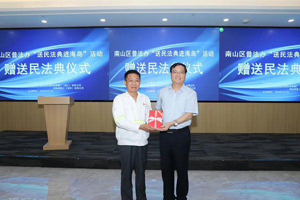 活動(dòng)中,蔣小文、康甲光代表市、區(qū)司法局向?qū)I洲島居民和友聯(lián)船廠職工贈(zèng)送民法典,并組織南山區(qū)民法典宣講團(tuán)團(tuán)長(zhǎng)曾常青為孖洲島的居民和員工開(kāi)展了一場(chǎng)生動(dòng)的民法典專題講座。