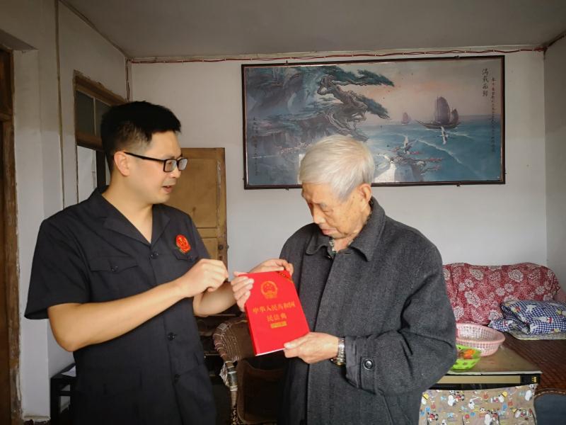 鑒于2021年1月1日即將施行的《民法典》合同編與現(xiàn)行合同法相比存在部分變化,為便于黃老更進(jìn)一步了解即將施行的民法典合同編內(nèi)容,大觀法庭決定將《民法典》送給黃老??紤]到黃老年歲已大,行動不便,法庭干警親自上門將民法典送到了黃老手里,劉小彬還為黃老講述《民法典》中的亮點(diǎn)內(nèi)容及合同編的變化,并解答黃老及家屬關(guān)于法律問題的咨詢。