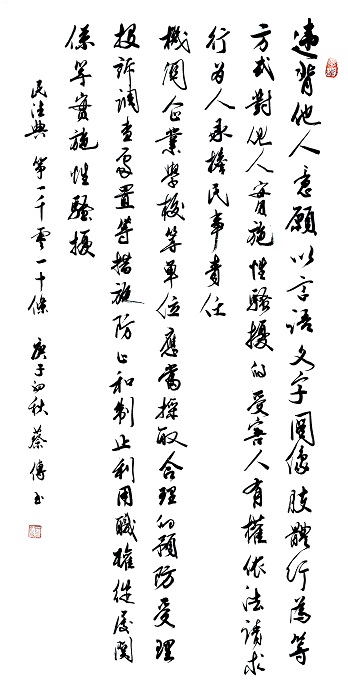 “書·法”活動以書寫《中華人民共和國民法典》法條開筆,未來將對準更多的法律。
