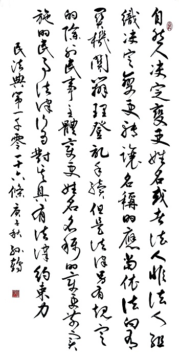 “書·法”活動(dòng)以書寫《中華人民共和國民法典》法條開筆,未來將對(duì)準(zhǔn)更多的法律。