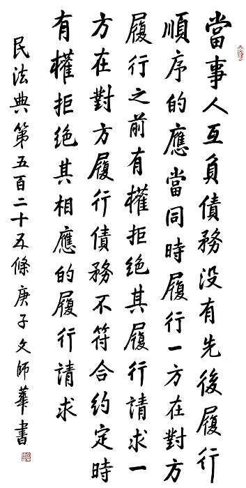 民法典第五百二十五條 當事人互負債務,沒有先后履行順序的,應當同時履行。一方在對方履行之前有權(quán)拒絕其履行請求。一方在對方履行債務不符合約定時,有權(quán)拒絕其相應的履行請求。