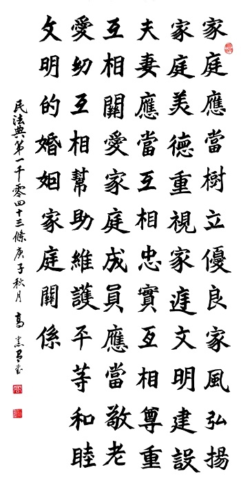 民法典第一千零四十三條 家庭應(yīng)當樹立優(yōu)良家風,弘揚家庭美德,重視家庭文明建設(shè)。