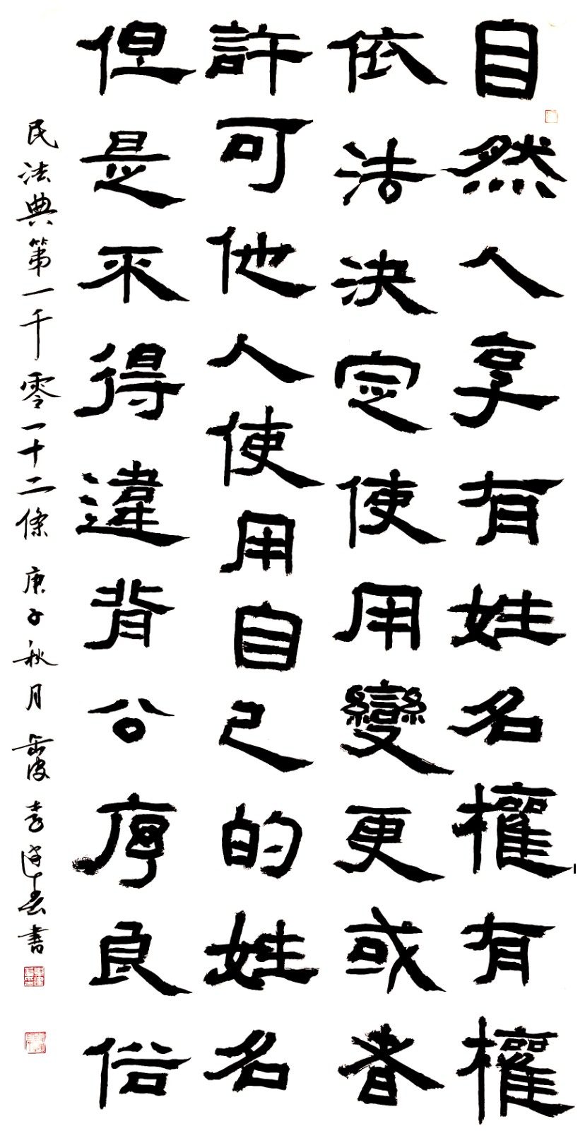 “書·法”活動(dòng)以書寫《中華人民共和國民法典》法條開筆,未來將對準(zhǔn)更多的法律。