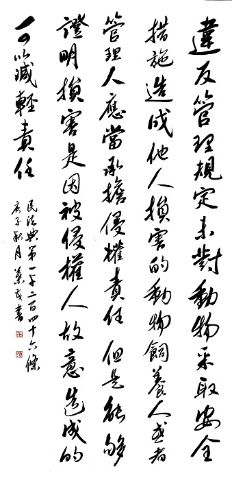 民法典第一千二百四十六條 違反管理規(guī)定,未對動物采取安全措施造成他人損害的,動物飼養(yǎng)人或者管理人應(yīng)當(dāng)承擔(dān)侵權(quán)責(zé)任;但是,能夠證明損害是因被侵權(quán)人故意造成的,可以減輕責(zé)任。