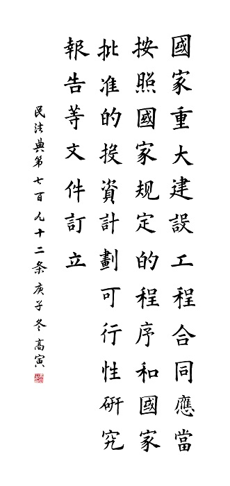 民法典第七百九十二條 國(guó)家重大建設(shè)工程合同,應(yīng)當(dāng)按照國(guó)家規(guī)定的程序和國(guó)家批準(zhǔn)的投資計(jì)劃、可行性研究報(bào)告等文件訂立。