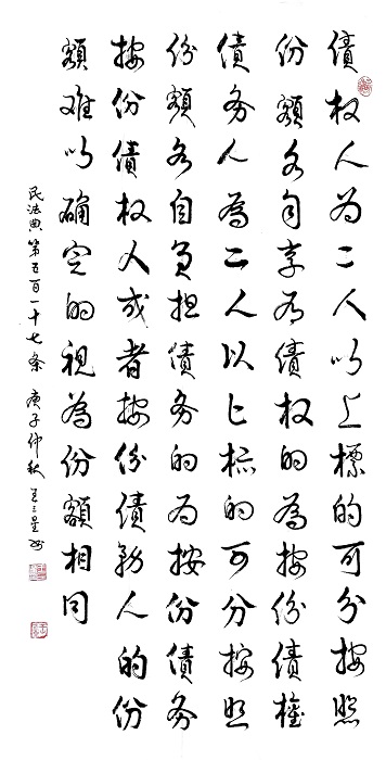 民法典第五百一十七條 債權(quán)人為二人以上,標(biāo)的可分,按照份額各自享有債權(quán)的,為按份債權(quán);債務(wù)人為二人以上,標(biāo)的可分,按照份額各自負(fù)擔(dān)債務(wù)的,為按份債務(wù)。