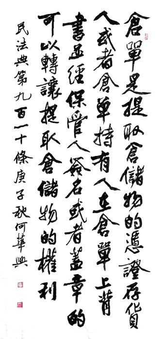 民法典第九百一十條 倉(cāng)單是提取倉(cāng)儲(chǔ)物的憑證。存貨人或者倉(cāng)單持有人在倉(cāng)單上背書并經(jīng)保管人簽名或者蓋章的,可以轉(zhuǎn)讓提取倉(cāng)儲(chǔ)物的權(quán)利。
