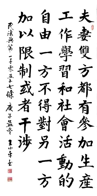 民法典第一千零五十七條 夫妻雙方都有參加生產、工作、學習和社會活動的自由,一方不得對另一方加以限制或者干涉。
