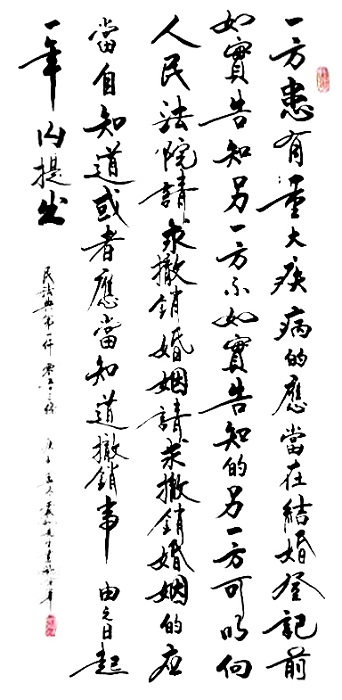 民法典第一千零五十三條 一方患有重大疾病的,應(yīng)當(dāng)在結(jié)婚登記前如實(shí)告知另一方;不如實(shí)告知的,另一方可以向人民法院請(qǐng)求撤銷婚姻。