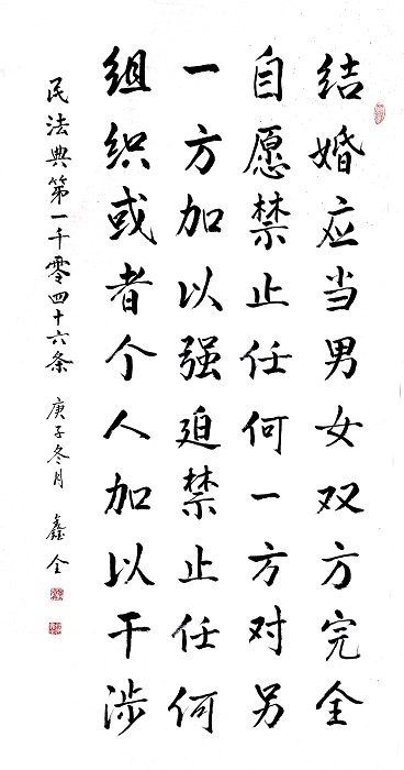 “書·法”活動(dòng)以書寫《中華人民共和國(guó)民法典》法條開筆,未來(lái)將對(duì)準(zhǔn)更多的法律。