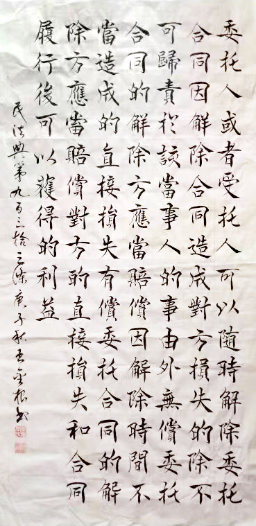 民法典第九百三十三條 委托人或者受托人可以隨時解除委托合同。因解除合同造成對方損失的,除不可歸責于該當事人的事由外,無償委托合同的解除方應(yīng)當賠償因解除時間不當造成的直接損失,有償委托合同的解除方應(yīng)當賠償對方的直接損失和合同履行后可以獲得的利益。