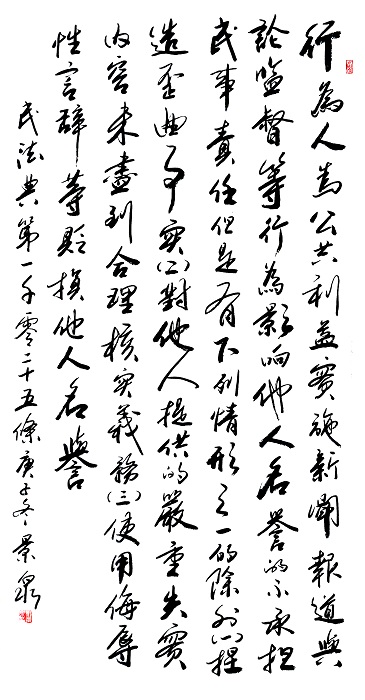 “書·法”活動以書寫《中華人民共和國民法典》法條開筆,未來將對準更多的法律。