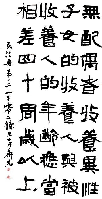 民法典第一千一百零二條 無(wú)配偶者收養(yǎng)異性子女的,收養(yǎng)人與被收養(yǎng)人的年齡應(yīng)當(dāng)相差四十周歲以上。