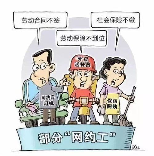 “網(wǎng)約工”打破了原來的“公司+員工”的模式,變成“平臺+個(gè)人”,大部分“網(wǎng)約工”以靈活、彈性、平臺、共享等就業(yè)形式存在,他們與互聯(lián)網(wǎng)平臺的法律關(guān)系較難界定。一些不具備法定意義上的勞動合同關(guān)系,如一些網(wǎng)約平臺上的快遞騎手,當(dāng)中有相當(dāng)一部分人員是以“兼職”的身份存在于“網(wǎng)約”的雇傭關(guān)系里。這也讓“網(wǎng)約工”這一新興群體游離于傳統(tǒng)的工傷保險(xiǎn)制度以外,缺乏相應(yīng)的保障。