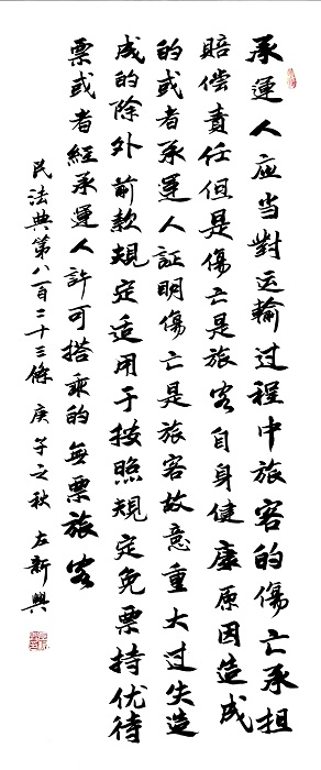 民法典第八百二十三條 承運人應當對運輸過程中旅客的傷亡承擔賠償責任;但是,傷亡是旅客自身健康原因造成的或者承運人證明傷亡是旅客故意、重大過失造成的除外。